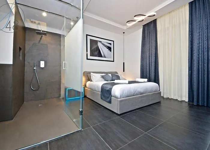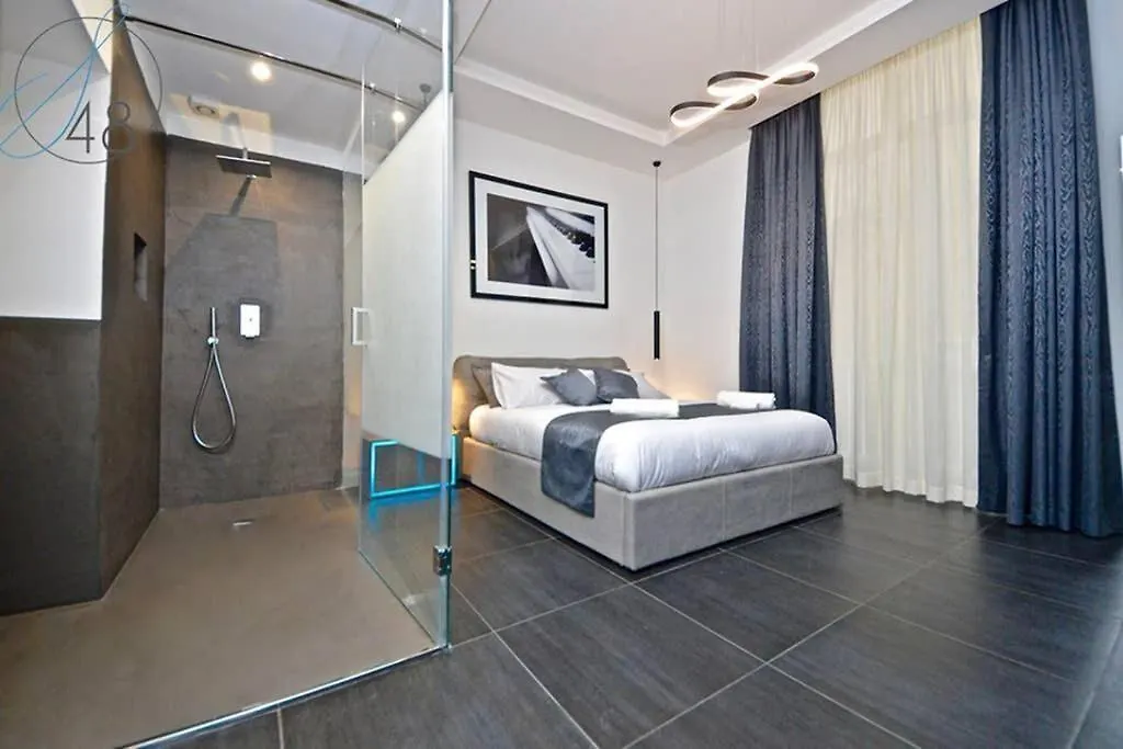Suite Quarantotto Luxury House dispone de un balcón y ofrece comodidades como climatizador y TV y TV de pantalla plana con canales vía satélite. En el interior encontrarás ventanas insonorizadas, además de un escritorio. El alojamiento incluye 3 dormitorios. El apartamento viene con 3 baños con un bidé, ducha a ras de suelo y un inodoro separado de la ducha. Además, encontrarás secadores de pelo y toallas de baño.